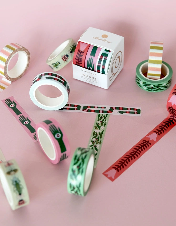 Add a decorative accent to your scrapbooks, correspondence, crafts, planners, and even gift wrapping with our set of illustrated paper tapes in three coordinating (& colorful!) patterns.