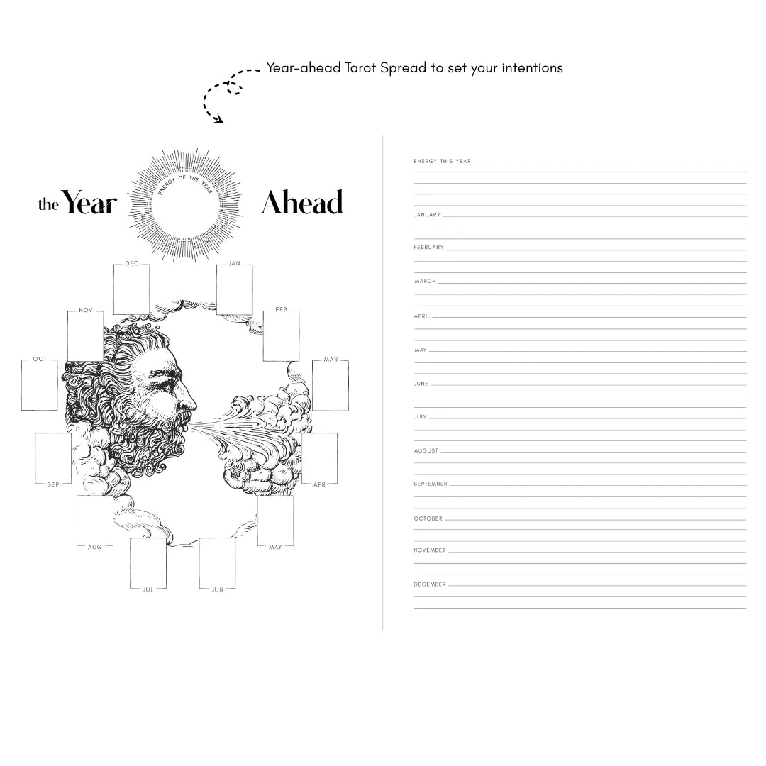 - 25 New and Full Moon spreads with dedicated journaling space for lunar intentions