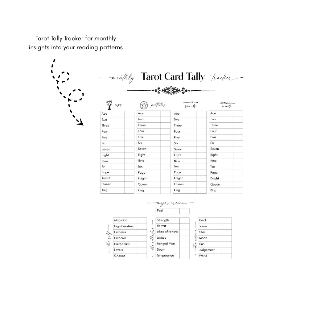 - Tarot Tally Tracker for monthly insights into your reading patterns